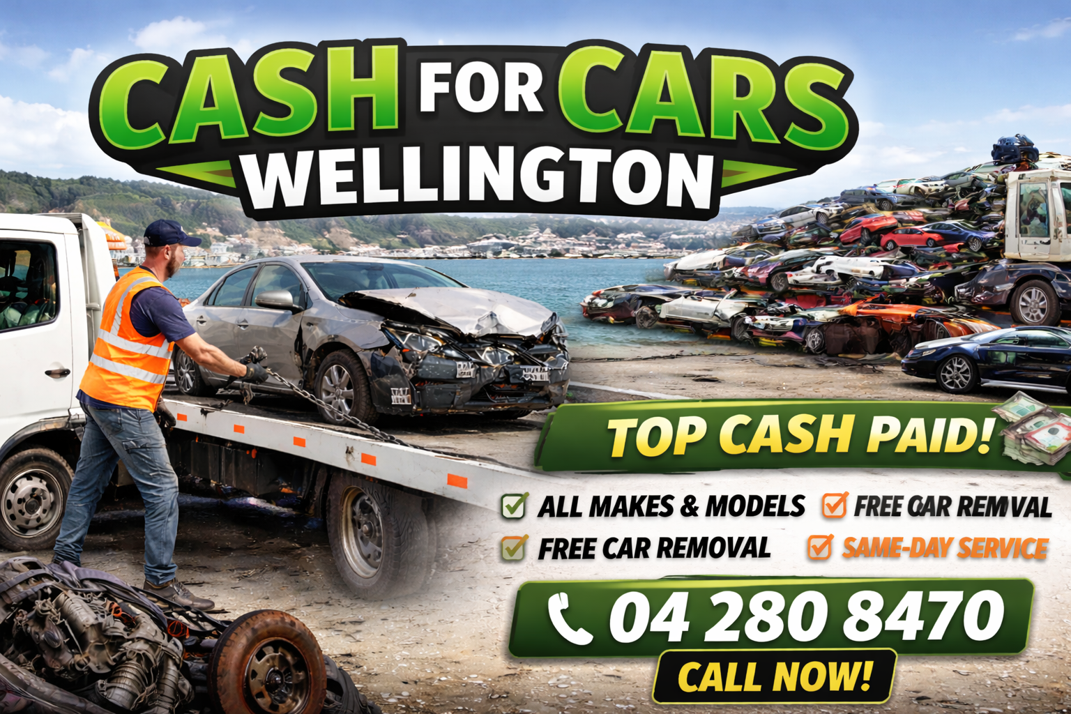 Cash For Cars Wellington buys scrap, damaged, and unwanted cars for up to $9,990. We offer instant cash, free towing, and same-day removal anywhere in Wellington — no hidden fees, just top-dollar deals for your vehicle.